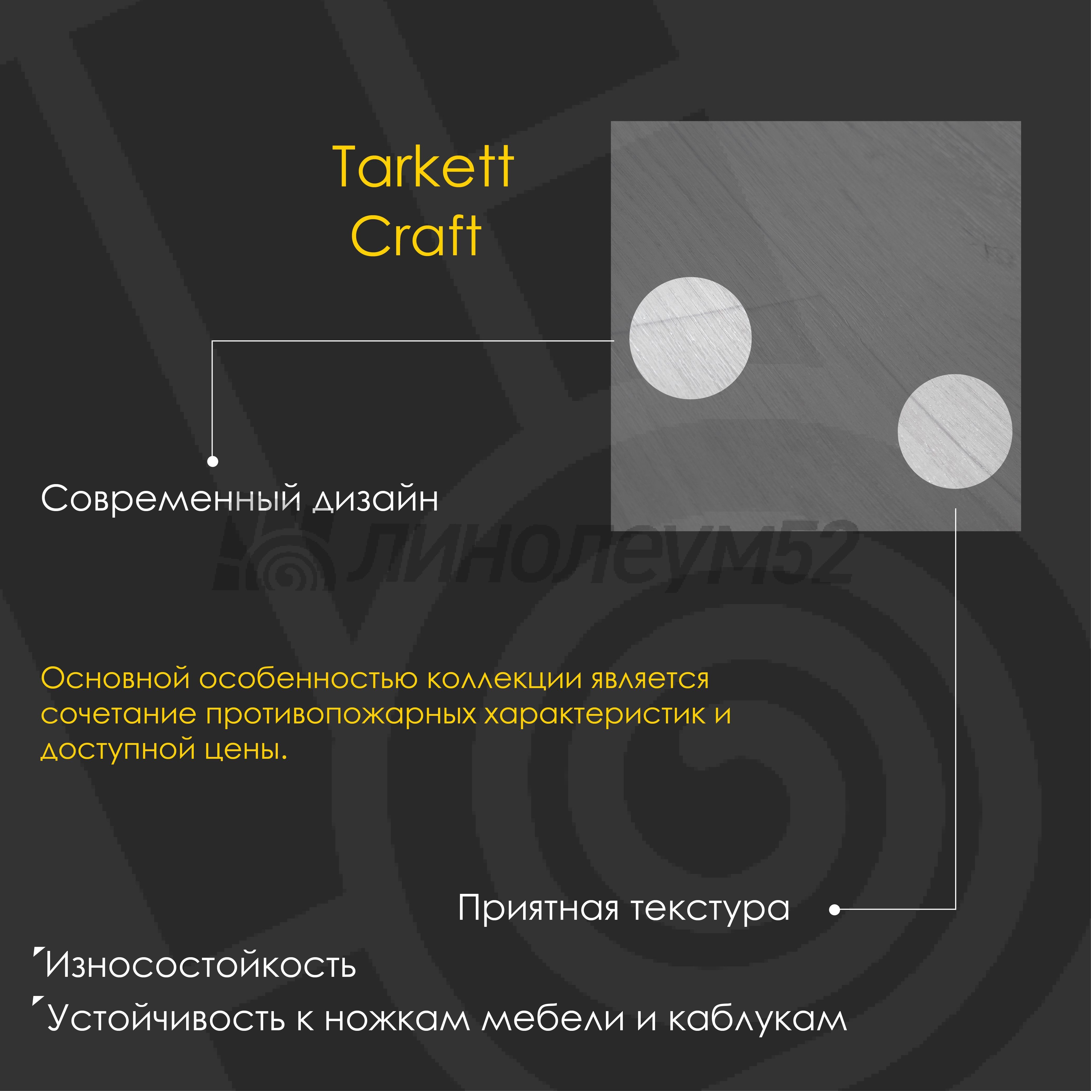 "CRAFT" - это основа из компактной пены в сочетании с самыми ходовыми оттенками сезона отныне пополнили ассортимент "TARKETT". Широкая линейка продуктов (ПВХ-покрытия, а ещё ламинат и паркет) и совершенный выбор дизайнов позволят создать индивидуальный стиль для каждого интерьера. "TARKETT" находится в постоянном сотрудничестве с архитекторами, проектировщиками и дизайнерами, а также управляющими компаниями, стремясь принести комфорт в разные помещения...