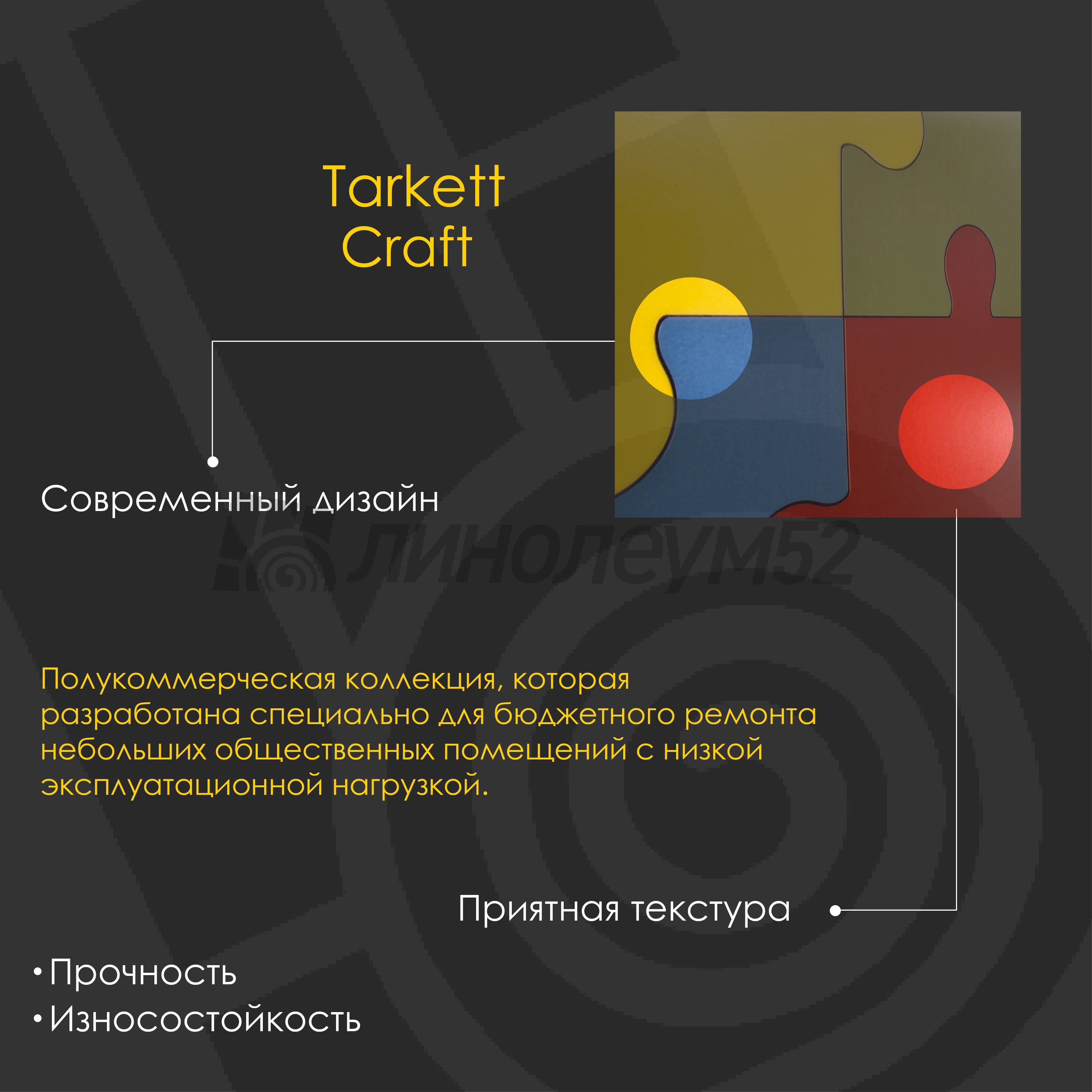 "CRAFT" - это основа из компактной пены в сочетании с самыми ходовыми оттенками сезона отныне пополнили ассортимент "TARKETT". Широкая линейка продуктов (ПВХ-покрытия, а ещё ламинат и паркет) и совершенный выбор дизайнов позволят создать индивидуальный стиль для каждого интерьера. "TARKETT" находится в постоянном сотрудничестве с архитекторами, проектировщиками и дизайнерами, а также управляющими компаниями, стремясь принести комфорт в разные помещения...