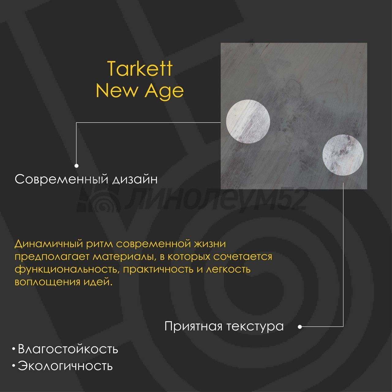 | Уникальные свойства: | Подходит для пола с подогревом +27°С / Продажа товара отпускается в упаковках / Уникальный стиль / Экологичность / Экономичный выбор для покупателей |