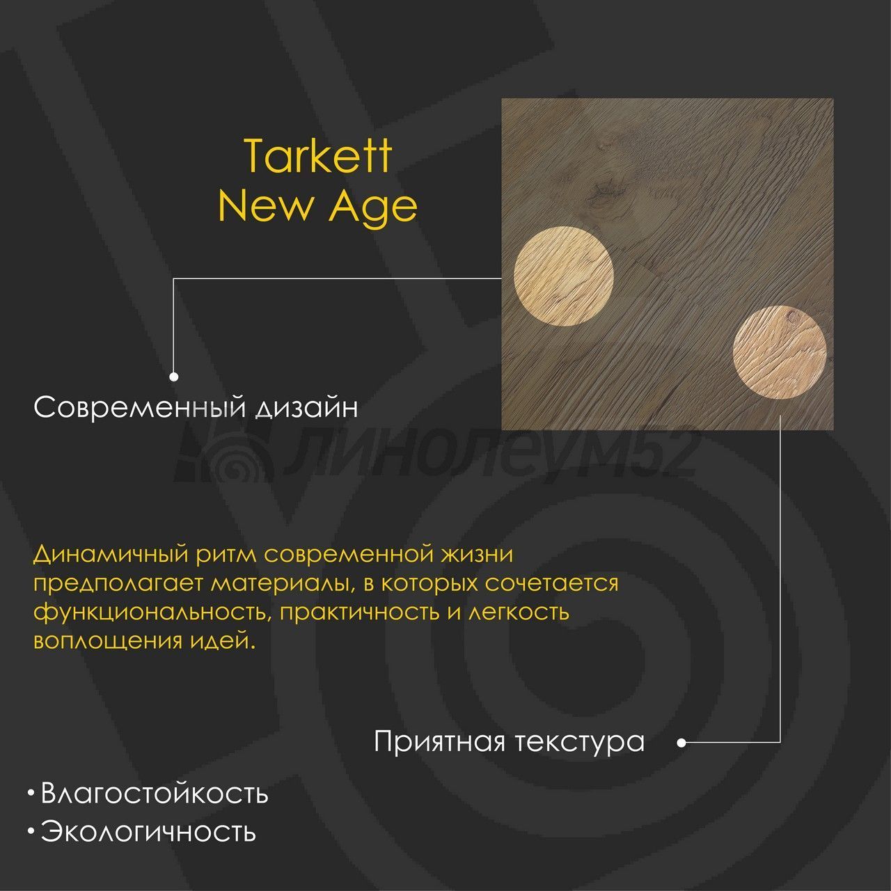 Уникальные свойства: Подходит для пола с подогревом +27°С / Продажа товара отпускается в упаковках / Уникальный стиль / Экологичность / Экономичный выбор для покупателей